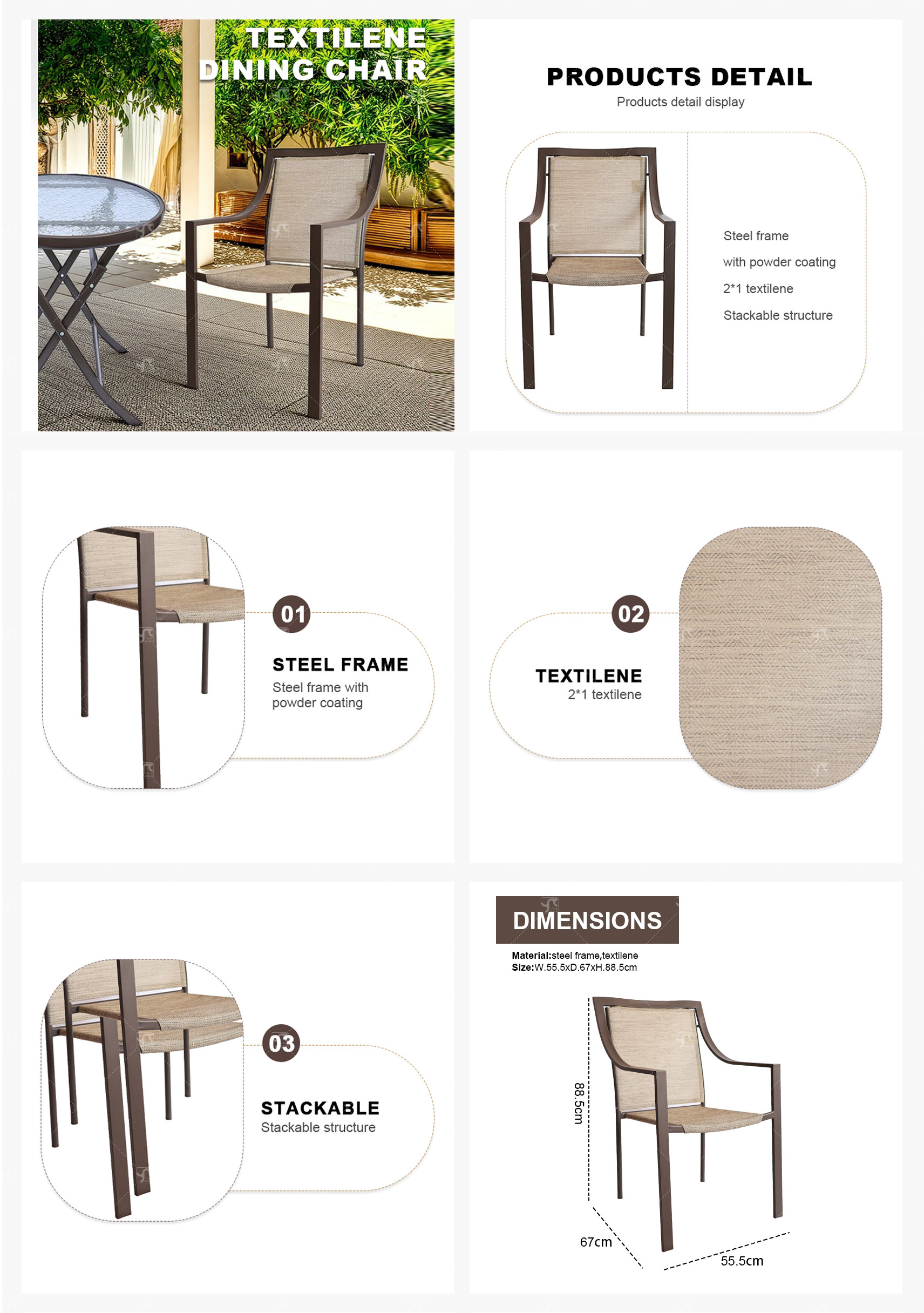 The Outdoor Garden Terrace Is Stackable and 2x1 Teslin Mesh Fabric Dining Chairs Are Designed in a Durable