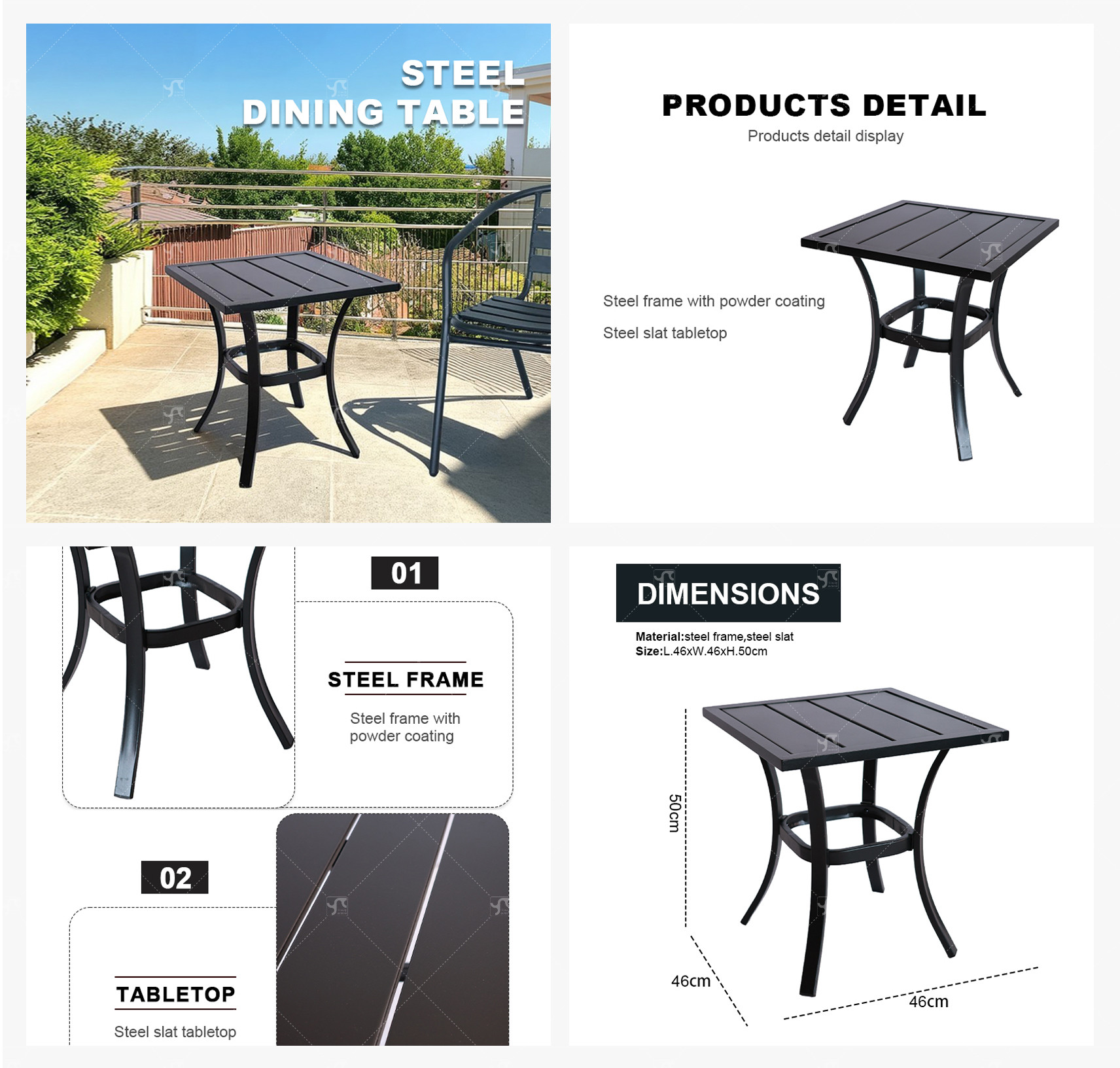 Outdoor Furniture Patio Garden Furniture Dining Table Square Backyard Bistro Table for Deck Backyard Lawn Garden